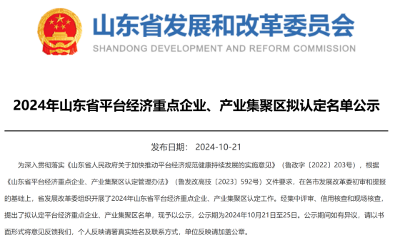 近日,山东省发展和改革委员会公布2024年度山东省平台经济产业集聚区名单,全省仅有7家入选,齐鲁科技金融大厦申报的山东省科创金融平台